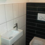 Een gedateerd toilet is in zijn geheel gerenoveerd. De oude toiletpot is vervangen door een modern hangtoilet. Aangezien de ruimte zeer beperkt was, moesten de aanvoerleiding en de rioolafvoer worden verlegd. Ook de wand- en vloertegels zijn geheel vernieuwd. Tevens zijn een nieuwe fontein en moderne afvoerbak geinstalleerd. Tenslotte zijn alle wanden en het plafond opnieuw geverfd.