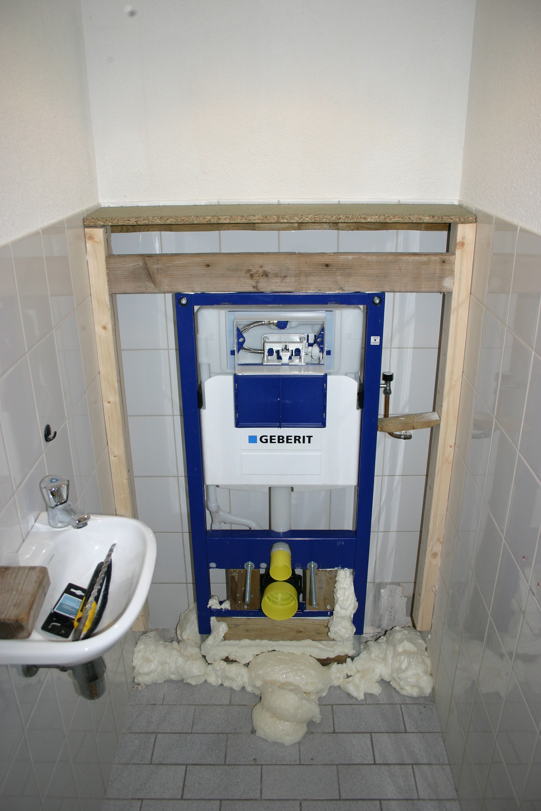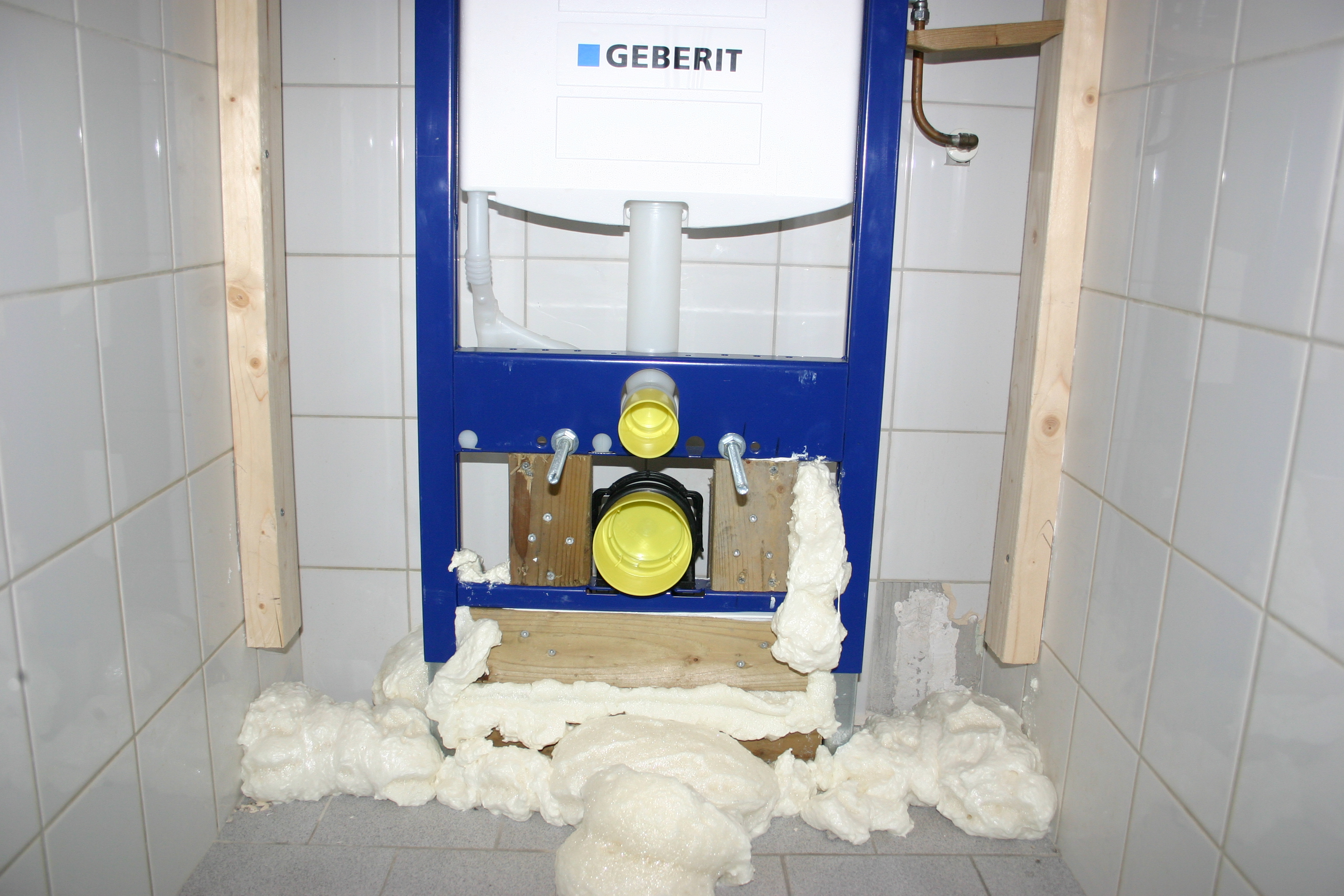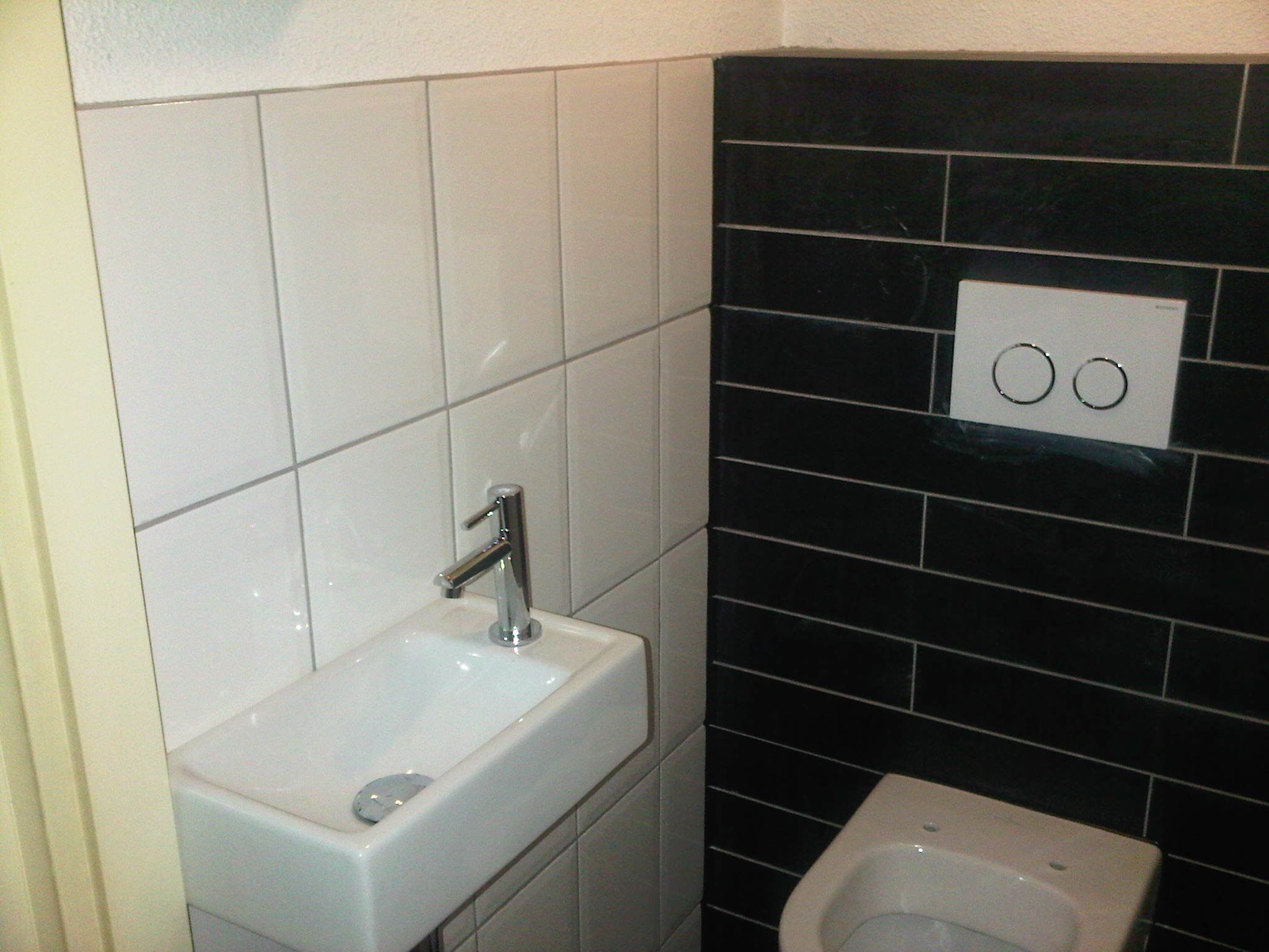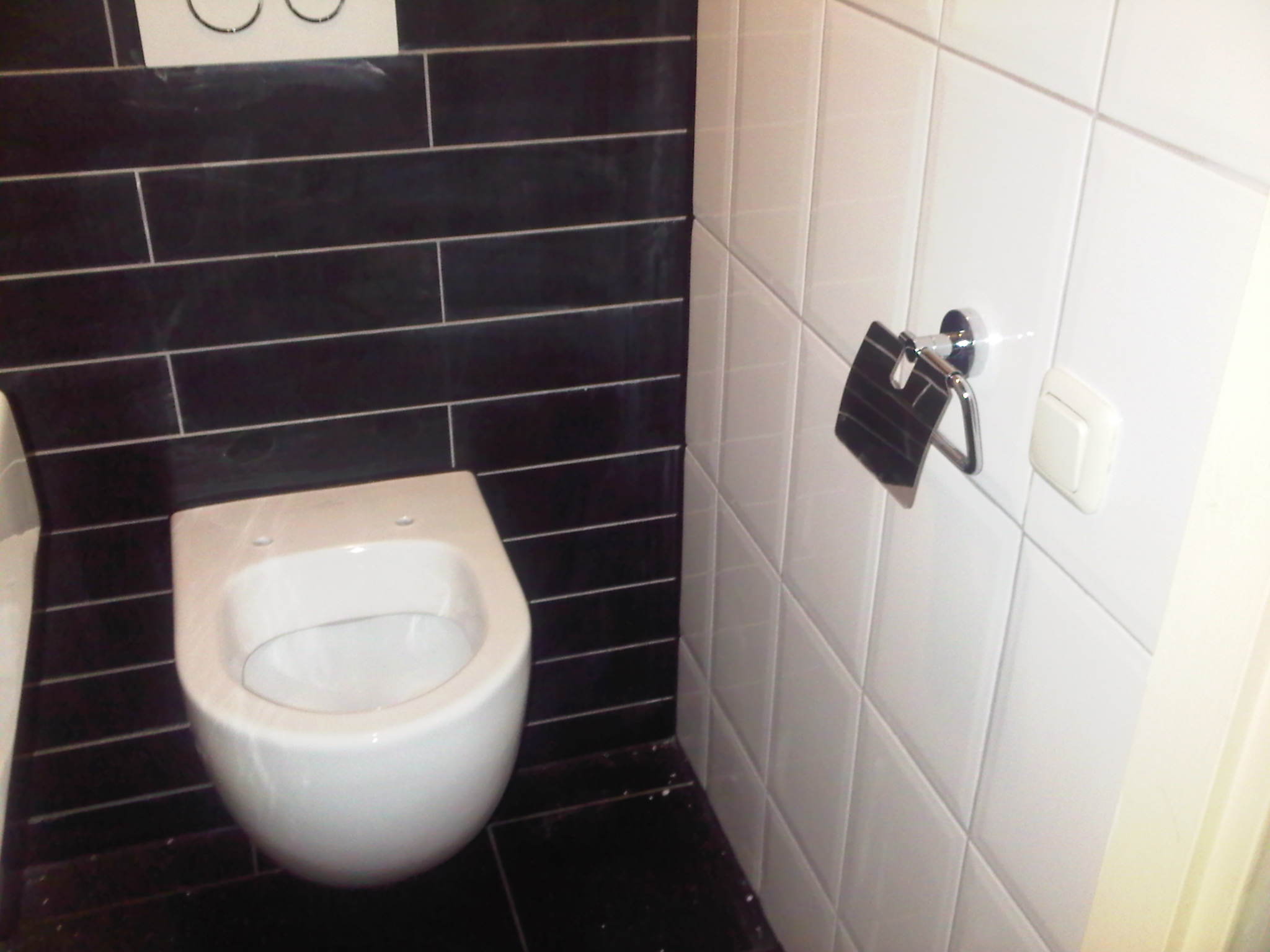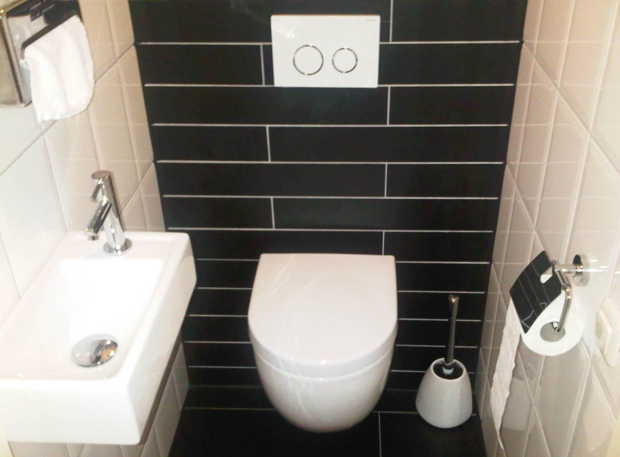 Een gedateerd toilet is in zijn geheel gerenoveerd. De oude toiletpot is vervangen door een modern hangtoilet. Aangezien de ruimte zeer beperkt was, moesten de aanvoerleiding en de rioolafvoer worden verlegd. Ook de wand- en vloertegels zijn geheel vernieuwd. Tevens zijn een nieuwe fontein en moderne afvoerbak geinstalleerd. Tenslotte zijn alle wanden en het plafond opnieuw geverfd.